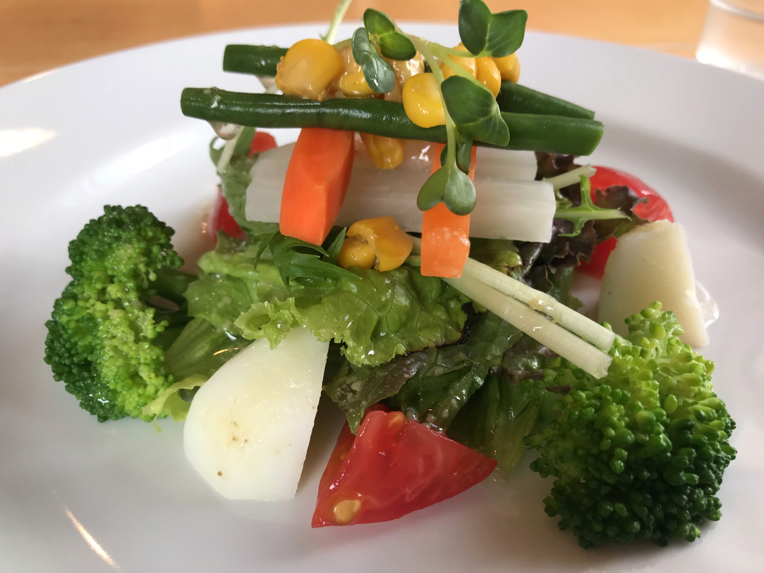 まずはサラダが運ばれてきます。やっぱり美瑛は新鮮ですね。どれもシャキシャキで、ドレッシングも野菜本来の味を殺していません。