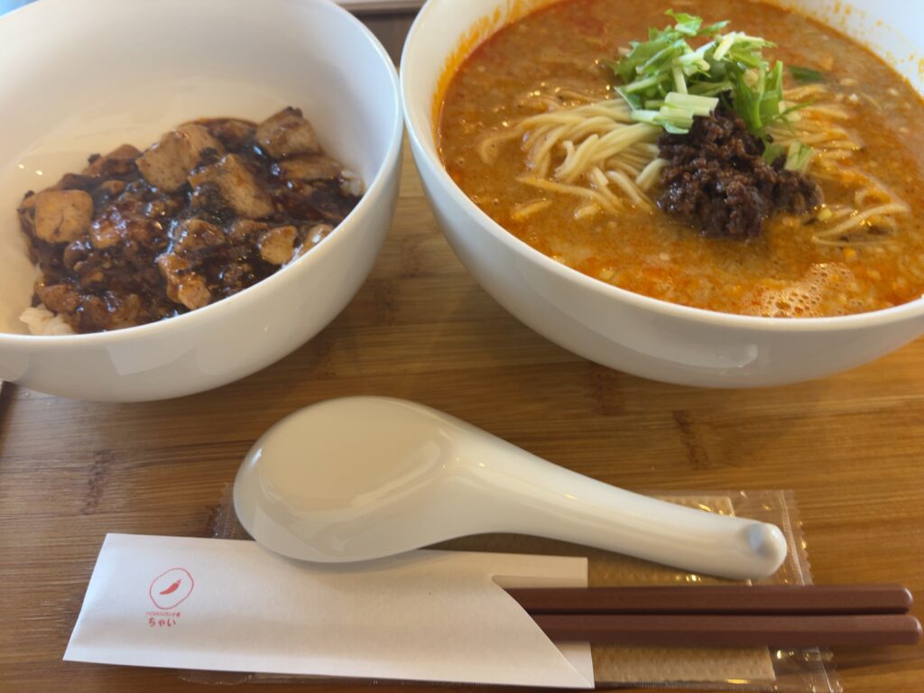 美瑛駅から線路沿いに旭川方面に向かうと、踏切があり、そのすぐそばに「ちゃい」さんがあります。中華が美味しいお店で、いつも店内は満席です。坦坦麺や麻婆丼が人気です。昼は11:00-14:00、夜は17:30-19:30。日・月定休。