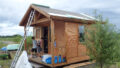 草刈りをしたあと、ザーッと雨が降りました。さっき草を刈った、入り口から小屋へかけてのアプローチを見ると、広範囲に水たまりが😥。