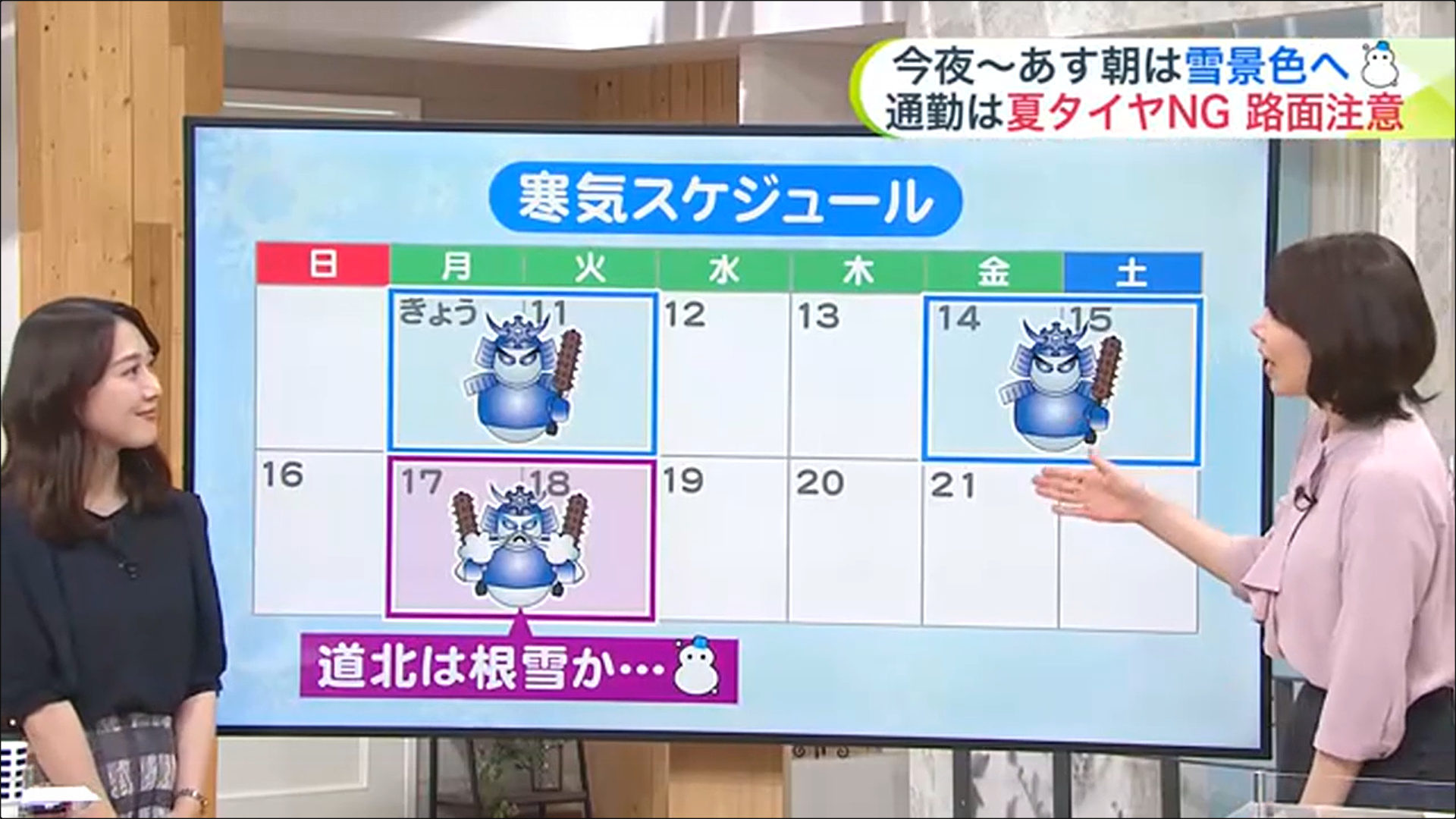 テレビの天気予報から。今週から寒気がやってきて雪が降り、一旦溶けるかもしれないけど、来週の17,18日には年末並みの寒気が来て、根雪になるかもしれないって。いつもなら12月に入ってから根雪になることが多いけど、今年はちょっと早そうです。