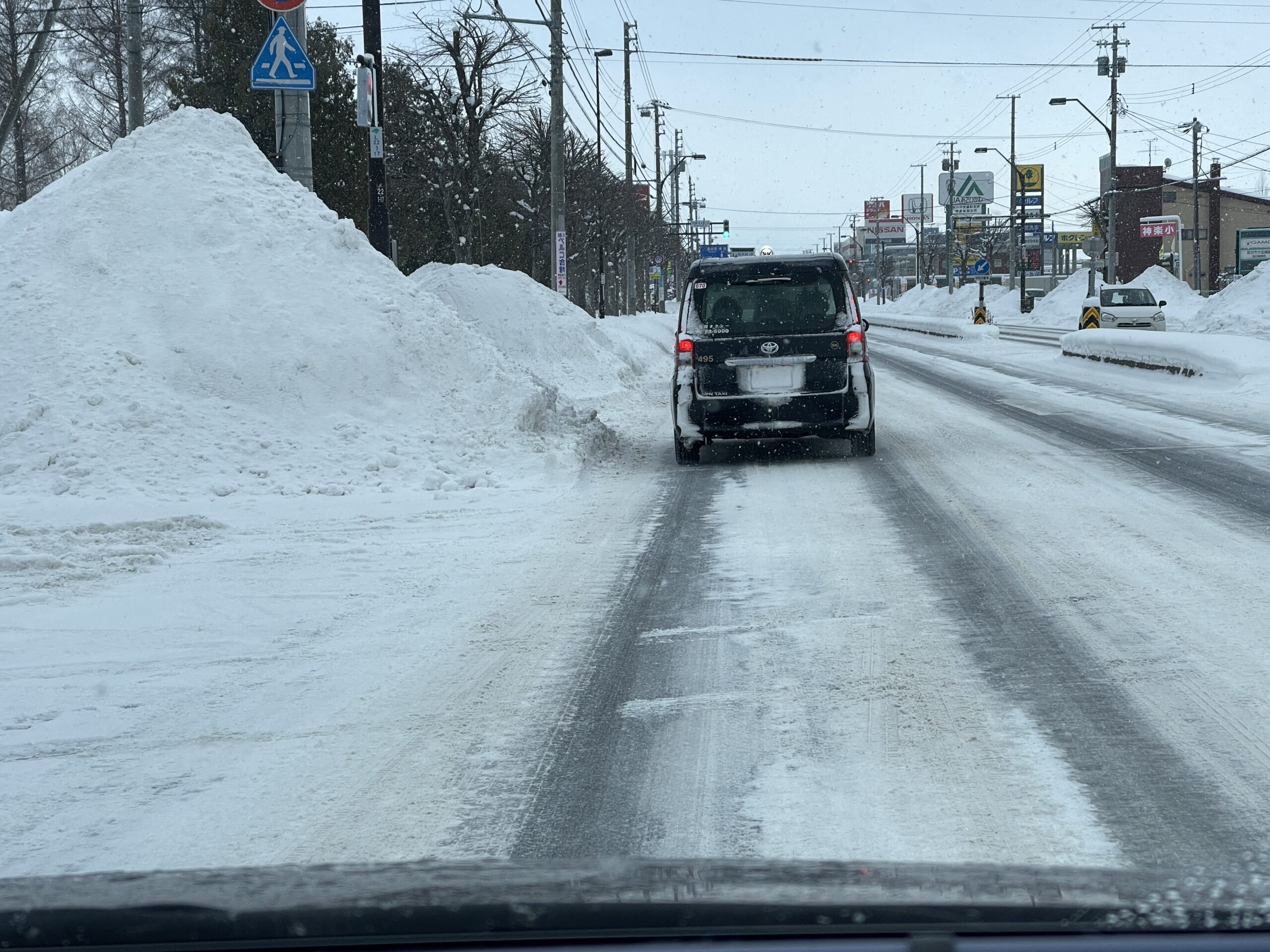 旭川に行くと、道路脇には雪の山!