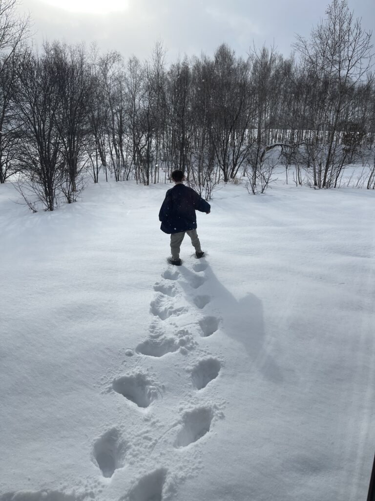 おもむろに外に出て、雪原を歩いて