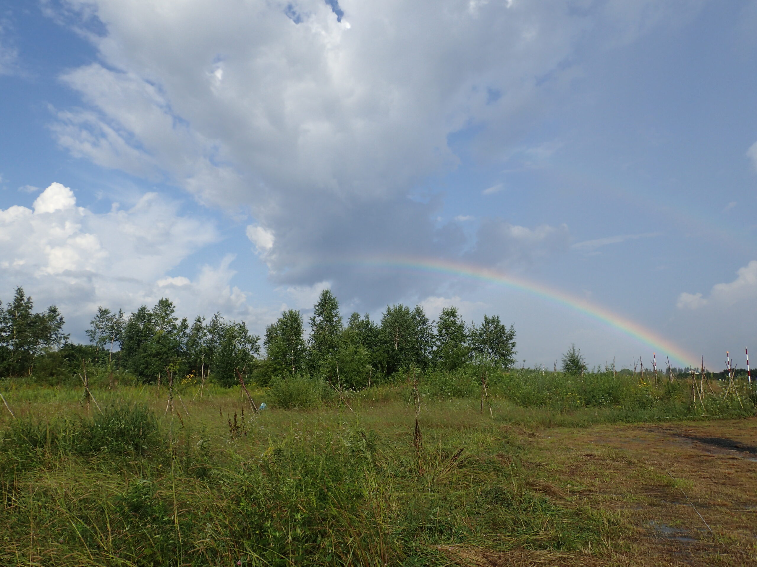 朝方、雨が降って、そのあと虹が出ました。もう雨が降っても、暗渠排水をしたから、土地がベタベタになることはないでしょう(^o^)