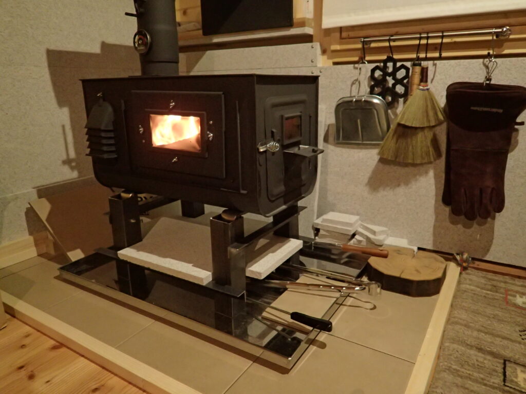 2016年8月に薪ストーブを設置して、この2017年5月に、初めて火入れをしました。GWでも北海道は朝晩寒いのです。着火もスムーズ、やっぱり揺らめく火を眺めるのは落ち着きます。小屋は8畳と狭いので、火が大きくなるとすぐに温かくなり(というか暑いくらい(^_^;))、空気口を狭くして火を弱火にします。なかなかこの火加減が難しいものです。広い部屋ならまだしも、狭い空間なので、暑くなったり寒くなったり。だけど、こういう作業は楽しいものです。