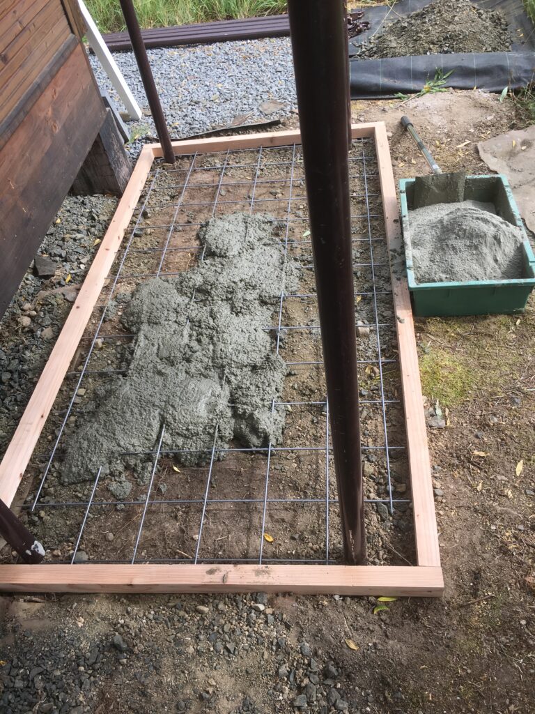 雪や凍結で物置が傾いたりしないように、コンクリートで基礎を作ることにしました。