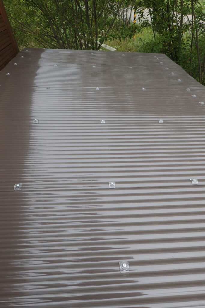 その上から波板を乗せてビス留めしていって屋根の完成です。